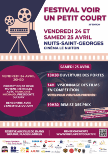 La Communauté de communes de Gevrey-Chambertin et de Nuits-Saint-Georges organise la 11ᵉ édition du Festival Voir Un Petit Court, rendez-vous désormais incontournable célébrant la créativité et la diversité du court‑métrage. Ouvert à la fois aux professionnels et aux amateurs, le festival met en lumière les talents émergents comme les réalisateurs confirmés.